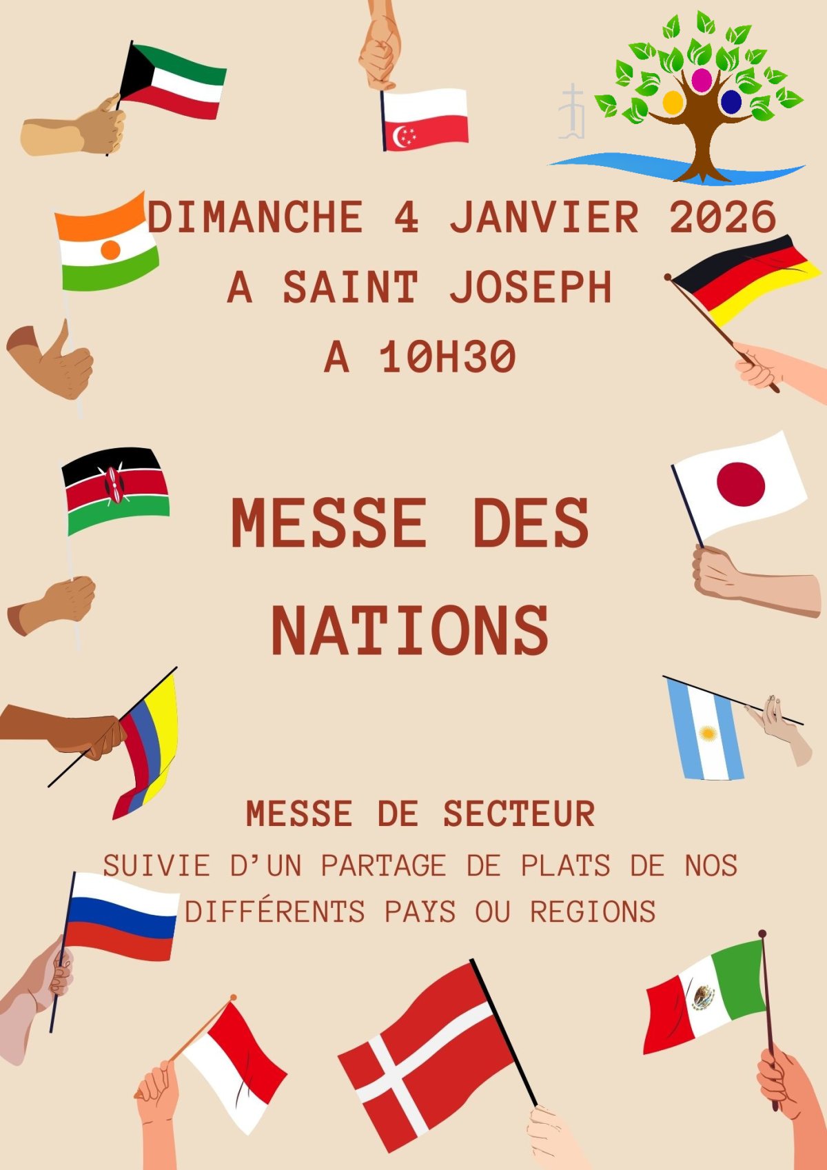 La feuille Flash info est mensuelle, chaque premier dimanche du mois, y compris pendant les vacances.Elle sera imprimée en peu d'exemplaires, sera affichée en A3 dans les églises, sera sur le site et sur l'application téléphonique écclésia
